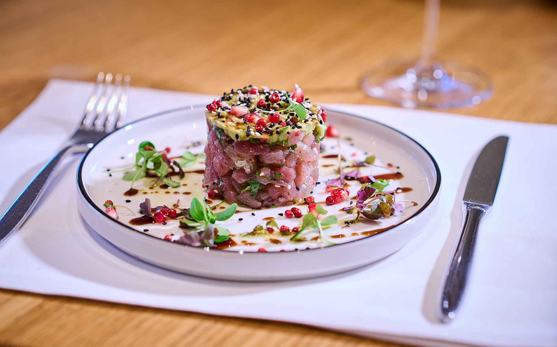 Meze zum Teilen, fein abgestimmte Grillgerichte und moderne Kompositionen treffen auf ausgewählte Weine und klassische Begleiter.